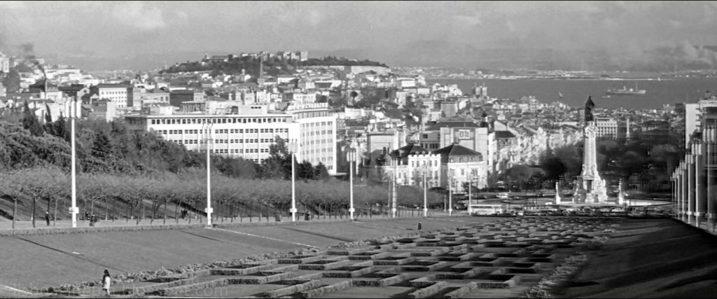 La vue somptueuse depuis le sommet du parc Eduardo VII renforce le contraste entre décor idyllique (visible) et activités sombres et brutales (cachées) des espions qui contaminent la ville.