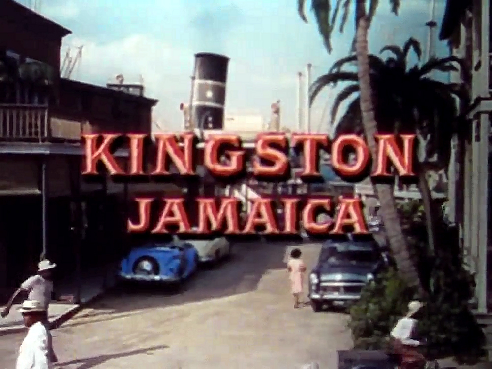 Pour être certain que le spectateur comprenne bien le message et reconnaisse le lieu, le nom de la ville où se situe l’action est souvent inscrit en lettres capitales au début du film. Comme ici, l’expédition de plongeurs partira de Kingston, berceau du reggae, à la recherche d’une mystérieuse cargaison, « La Cité sous la mer » (film réalisé par Budd Boetticher en 1953).
