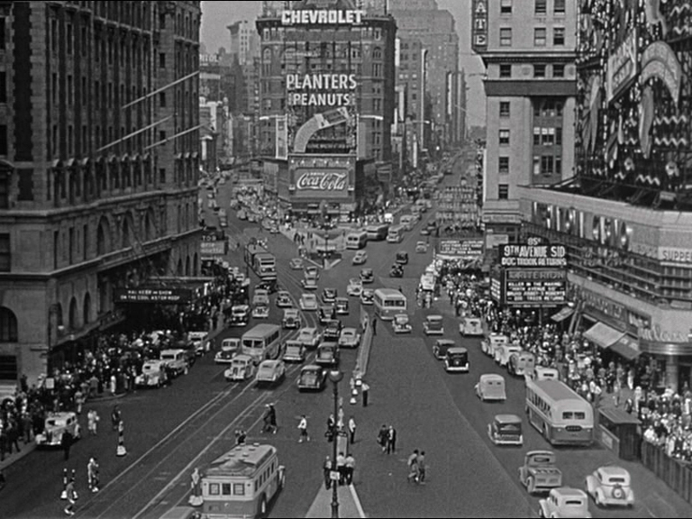 Comme ci-dessus, cette vue du centre de New York en plein effervescence, fige l’instant où l’extraterrestre Klaatu décide que ça sera « Le jour où la terre s’arrêta » (film réalisé par Robert Wise en 1951).