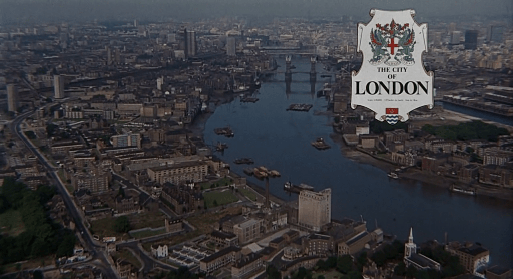 Pour le grand retour d’Alfred Hitchcock en 1972 dans sa ville natale, après des décennies d’activité à Hollywood, la scène d’ouverture de « Frenzy » reproduit une véritable carte postale avec nom et blason de la ville.