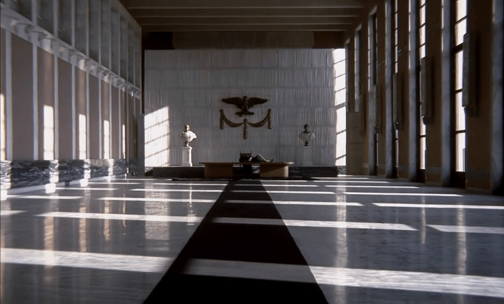 La composition symétrique de la tour Eiffel renvoie aux scènes du film tournées à Rome, dans le quartier futuriste et fasciste EUR. Cet ensemble a été construit sous la direction de l’architecte Marcello Piancentini et initié par Benito Mussolini pour l’exposition universelle de 1942.