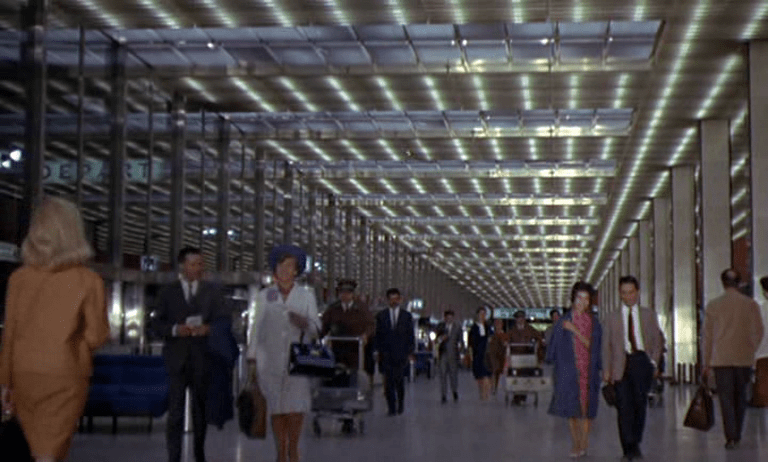 De Broca joue donc à fond la carte de l’étrangeté du décor, au fur et à mesure que le récit avance : de la ville de Paris classique, connue de tous, au passage à l’aérogare d’Orly s’annonce déjà une plongée dans l’hyper-modernité d’une époque à venir (poussée à son paroxysme par Tati dans « Playtime »).