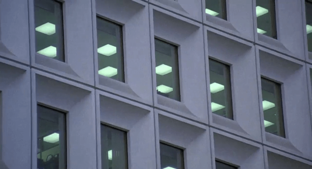 Toujours est-il que l’image de la ville montrée dans le film est extrêmement intéressante, pas seulement par les gratte-ciels uniformes et anonymes, mais aussi par la prédominance des signes et d’une signalétique débordante qui définissent bien plus que l’architecture, l’espace urbain.