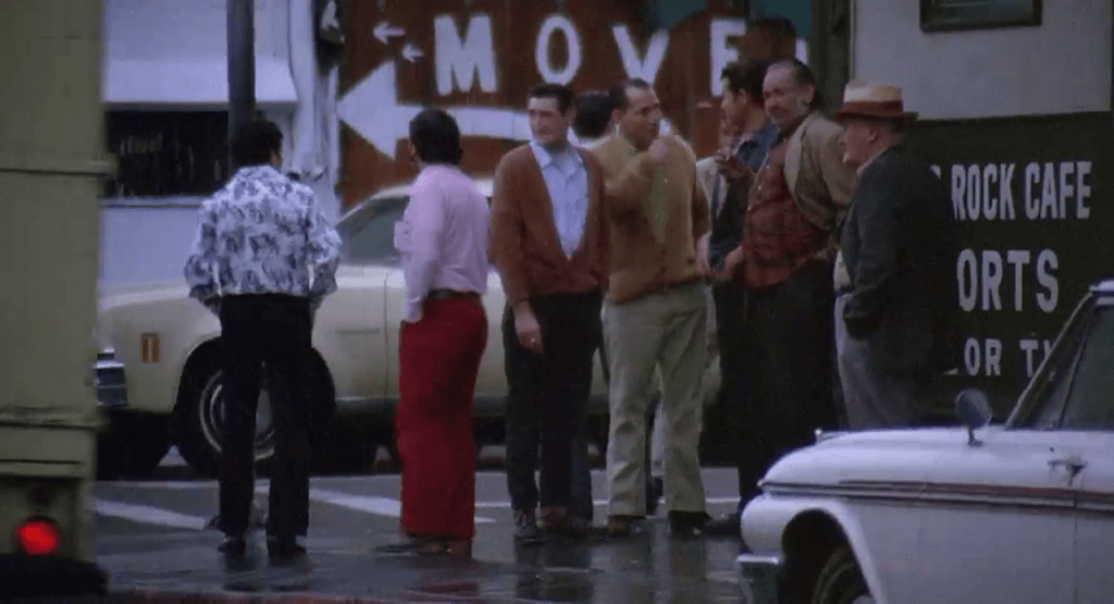 Si la ville reste anonyme dans ce film, les fringues délirantes et l’art de vivre de la pègre – au diapason du design et de la mode des années 70 – est mise en avant.