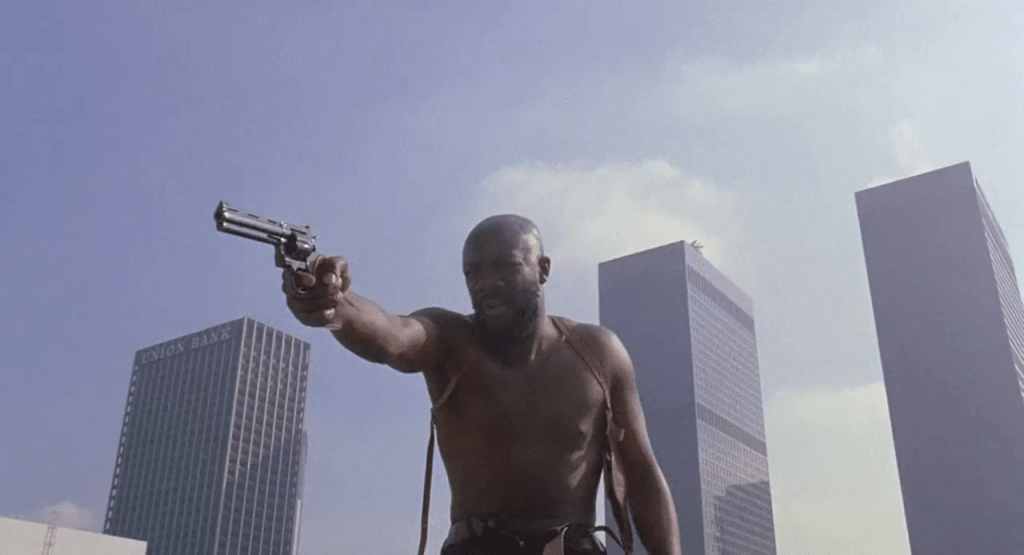 Hayes y incarne un chasseur de prime cool et indestructible, entre Clint Eastwoods (« Dirty Harry ») et Charles Bronsons (« Justicier dans la ville »), qui dégomme ses adversaires sur fond de gratte-ciels interchangeables d’un Los Angeles en plein expansion. D’abord structuré comme un buddy movie qui met en scène un duo de choc drôle et insouciant, l’ambiance bascule au fur et à mesure dans le revenge movie, quand l’entourage de Turner est décimé par une bande de maquereaux grotesques et méchants.