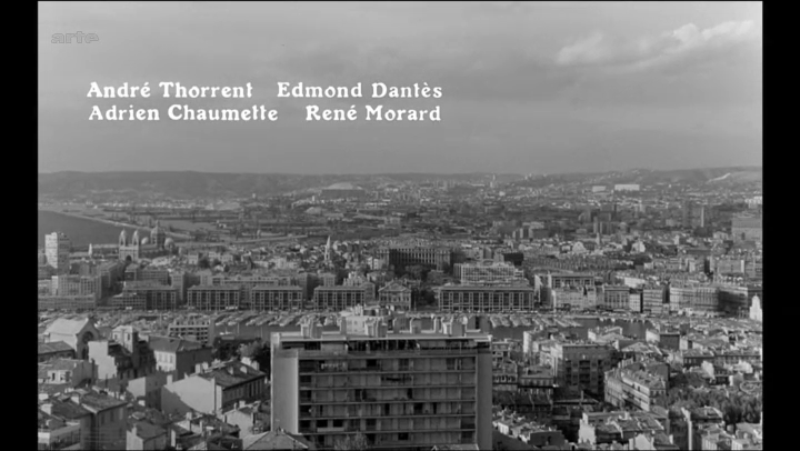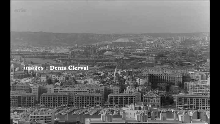 Le générique qui suit s’inscrit sur un panoramique qui tourne lentement de droite à gauche à partir des collines, avec Marseille au premier plan …
