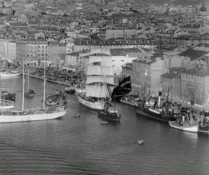 … jusqu’au Vieux-Port avec son tout nouveau front bâti – conçu par Fernand Pouillon et construit entre 1951 et 1955. Un deuxième travelling enchaîne sur les installations portuaires avant de revenir enfin vers l’Estaque, où l’histoire de la vieille dame peut commencer.