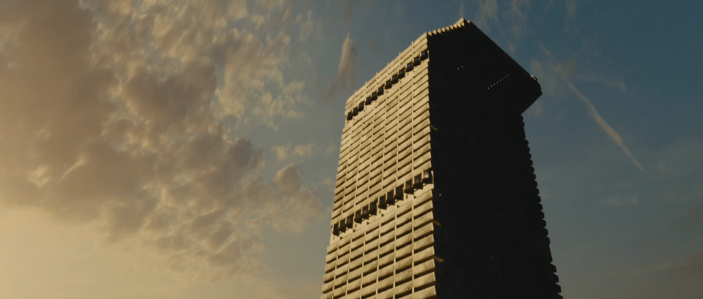 Un créateur qui habite et règne tel un roi sur son œuvre, un ensemble brutaliste de cinq tours d’habitation, dans une Angleterre imaginaire des années 70.