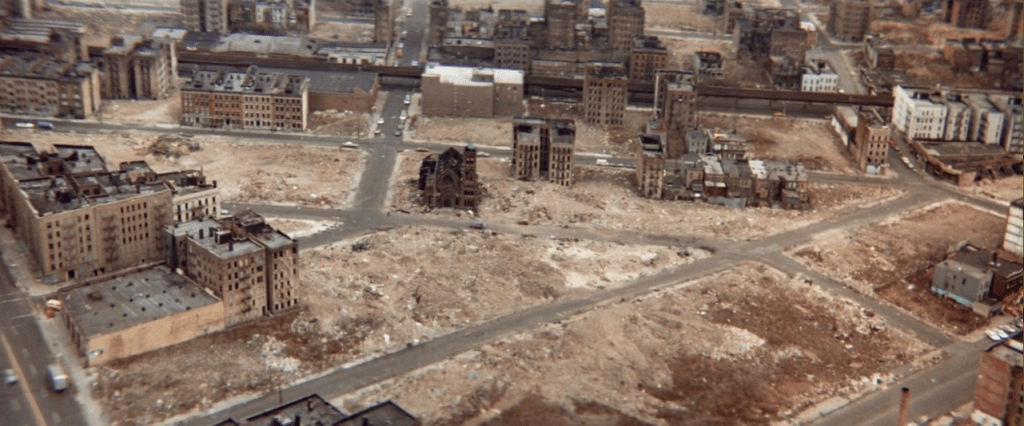 Si ce quartier est aujourd’hui surtout reconnu comme le berceau du hip-hop à la fin des années 70, c’est aussi à ce moment-là que son déclin est à son paroxysme, avec la plupart des immeubles délabrés, en ruines et désertés par ses habitants.