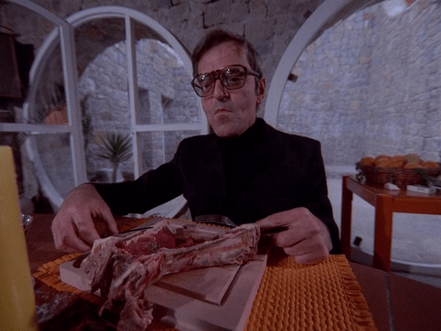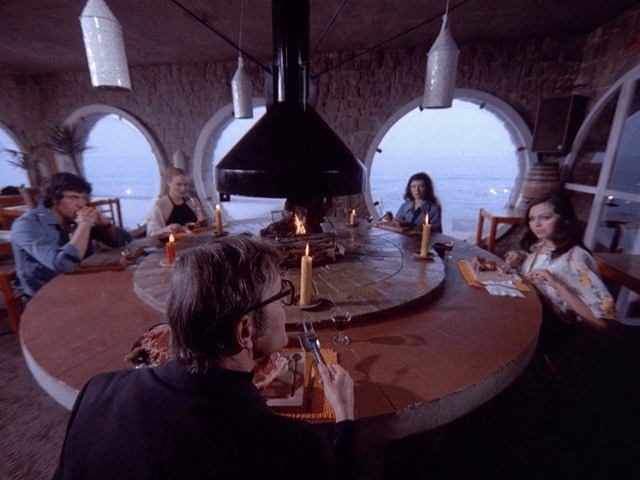 La scène d’anthologie où le couple de chasseurs d’hommes déguste de la chair humaine en présence de leur future victime a été tournée dans un troisième bâtiment situé au pied de « Xanadu », le « Manzanera Social Club » avec ses quatre hublots gigantesques, également construit par Ricardo Bofill. (Le bâtiment apparaît aussi dans « Crime dans l’extase »).