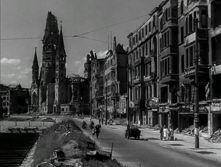 … coupe sur un autre travelling tourné à Berlin avec en fond de perspective, la symbolique « Gedächtniskirche », gravement endommagée par les bombardements, …