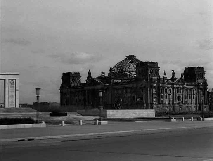 … et Wilder termine avec une vue filmée dans le grand décor construit en extérieur à Hollywood par Dreier et Tyler. Aucune des trois vedettes (Marlene Dietrich, Jean Arthur, John Lund) ne se rendra à Berlin pour le tournage.