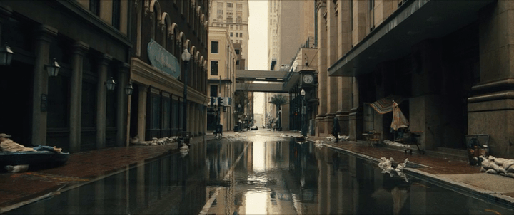 Mais la critique environnementale reste un prétexte et la ville submergée se réduit à un décor ciné-génique. Les questions liées aux changements (spatiaux et sociétaux) ne sont pas approfondies alors qu’on a les pieds dans l’eau.