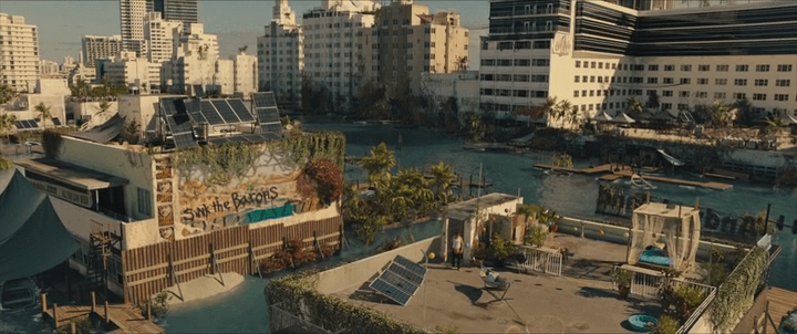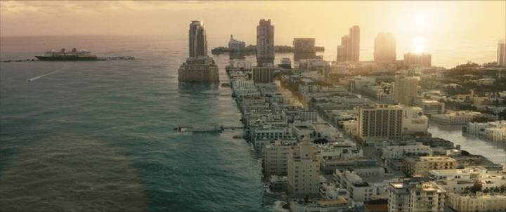 « Réminiscence » déploie un futur proche où la ville de Miami est partiellement submergée par les flots, suite au réchauffement climatique.