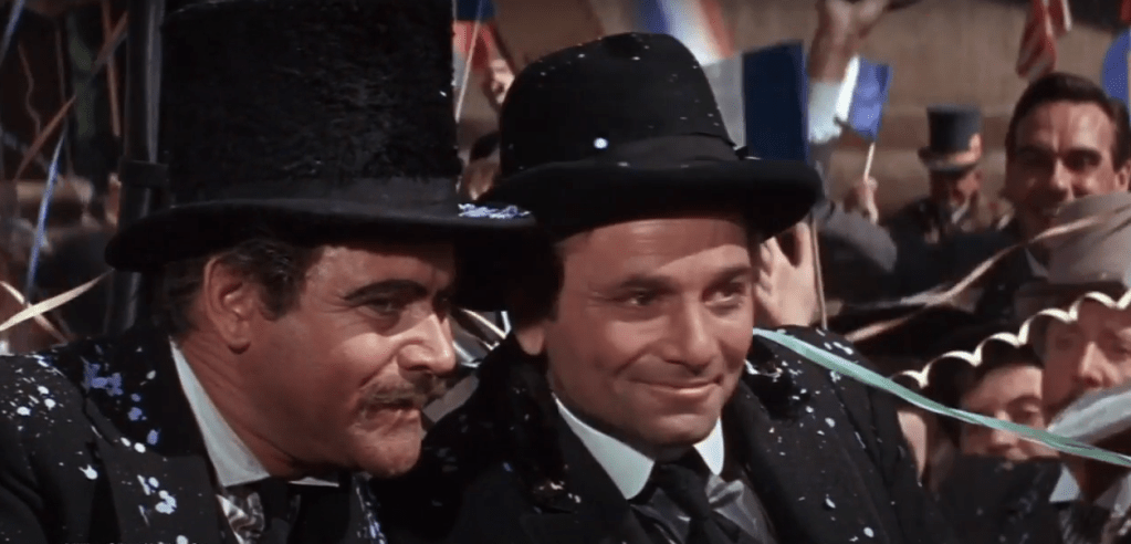 Mais la fin la plus malicieuse de la tour Eiffel est son sabotage par le Professor Fate (Jack Lemmon) et son fidèle assistant Max (Peter Falk), mauvais perdant, après avoir été battus par le flamboyant Tony Curtis dans « La Grand Course autour du monde ».