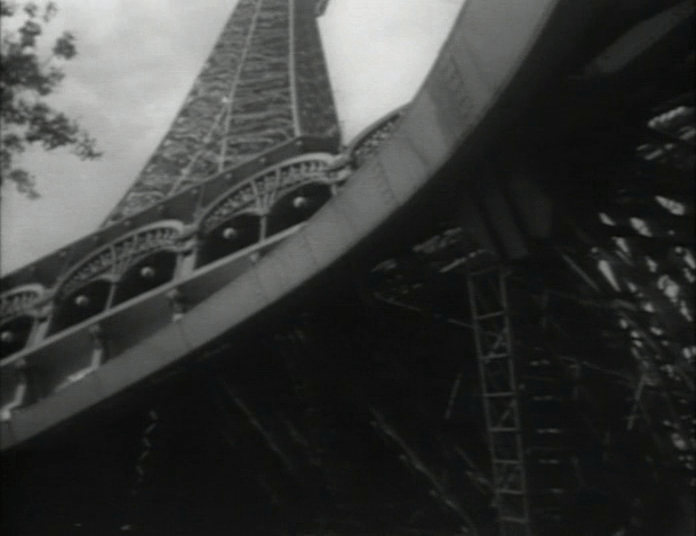 La tour Eiffel est l’une des étapes d’une visite effrénée de la capitale française dans « A l’est de Shanghaï ». On la découvre à deux reprises. La première vue en contre-plongée très dynamique met en valeur le rayon de courbure des quatre piliers de la base. Une vue assez étonnante et inhabituelle qui renforce l’impression de regarder sous les jupes de la grande dame.