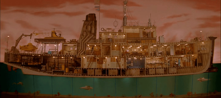 On retrouve ce type de vue dans les livres pour enfants pour expliquer le fonctionnement d’une maison, d’un bateau ou d’autres univers plus ou moins complexes. Wes Anderson est un grand amateur de ce procédé, notamment dans « La vie aquatique » (ci-dessus) et « Moonrise Kingdom ».
