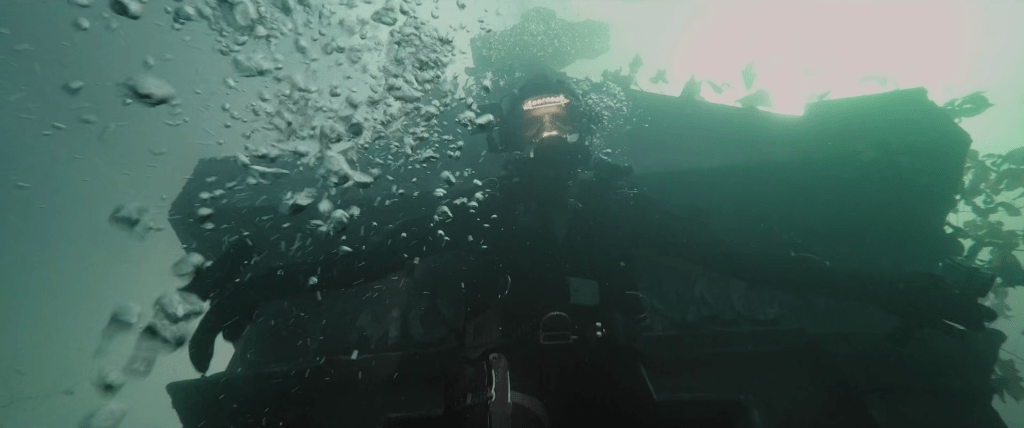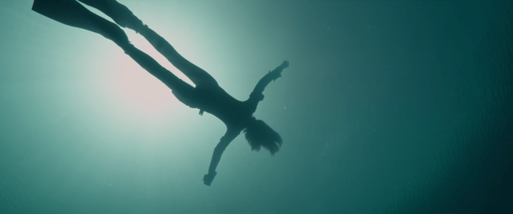 Avant de plonger dans le lac pour découvrir la « deep house », la douce Tina (Camille Rowe) teste ses capacités à retenir son souffle dans son bain. Elle appréhende ce projet de plongée …