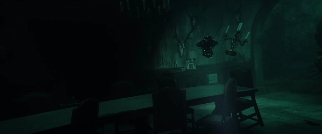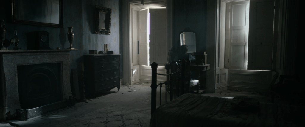 « The Lodgers » s’attarde à montrer le sinistre manoir des jumeaux dans les moindres détails. De lents travellings suivent les personnages dans les pièces sombres. La faible luminosité et l’état délabré de la maison apportent également une touche d’angoisse.