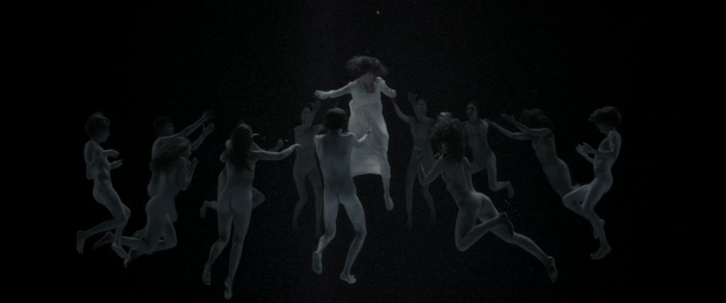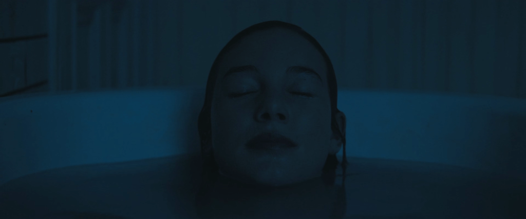 Avant de s’enfoncer dans les mystères de sa maison, dont la partie inférieure s’avère également engloutie par les eaux, la douce Rachel (Charlotte Vega) prend un bain relaxant bientôt perturbé …