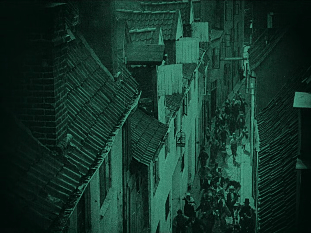 Albin Grau, très impliqué dans la genèse du film, est capable de trouver des lieux exceptionnels dans le Nord de l’Allemagne, comme ci-dessus, en utilisant les anciens entrepôts de Lübeck, …