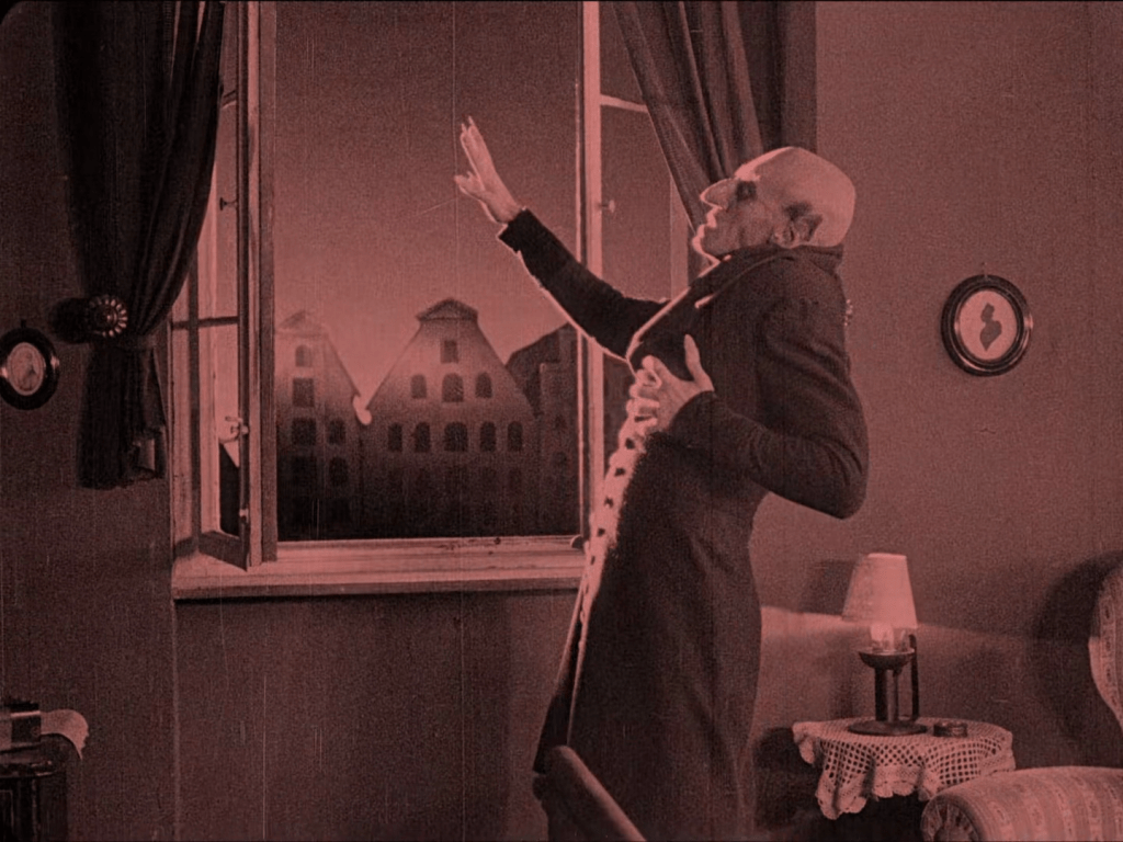 Arrivé chez le comte Orlock (l’effroyable Max Schreck), Hutter réalise vite que son hôte est un personnage étrange. L’inquiétant Orlock s’intéresse en effet davantage au médaillon d’Ellen, la jeune et jolie femme du jeune homme (la gracieuse Greta Schröter), qu’aux actes de vente ! Mais il signe rapidement, quand il réalise que l’acquisition se trouve juste en face de la maison du couple. Il s’y rend aussitôt, avec son cercueil, après avoir vidé Hutter de son sang !