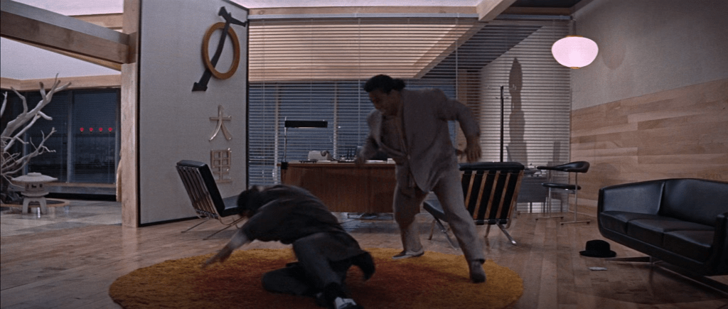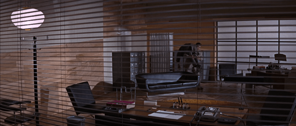 Le bureau du chef des services secrets japonais, Tiger Tanaka (Tetsuro Tanba), partenaire et soutien indispensable pour 007, est au contraire confiné, enfermé et ne laisse pas passer la lumière naturelle.