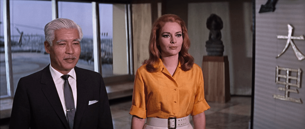 La seconde visite, officielle cette fois-ci, est un face-à-face courtois, mais très méfiant entre James Bond et le maître des lieux, M. Osato (Teru Shimada), accompagné de sa charmante mais dangereuse assistante Helga Brandt (Karin Dor).