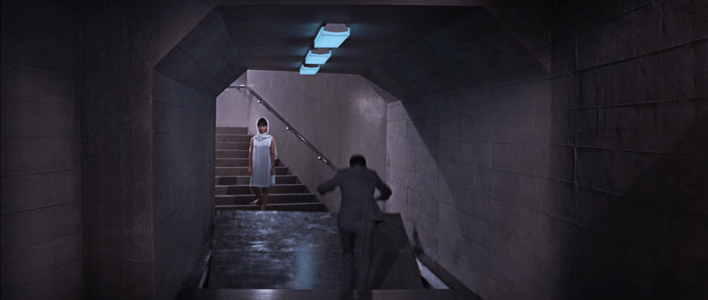 Les « establishing shots » se focalisent sur les multiples enseignes lumineuses, qui donnent déjà en 1967, un petit avant-goût de ce que sera le Los Angeles de « Blade Runner » quelques décennies plus tard.