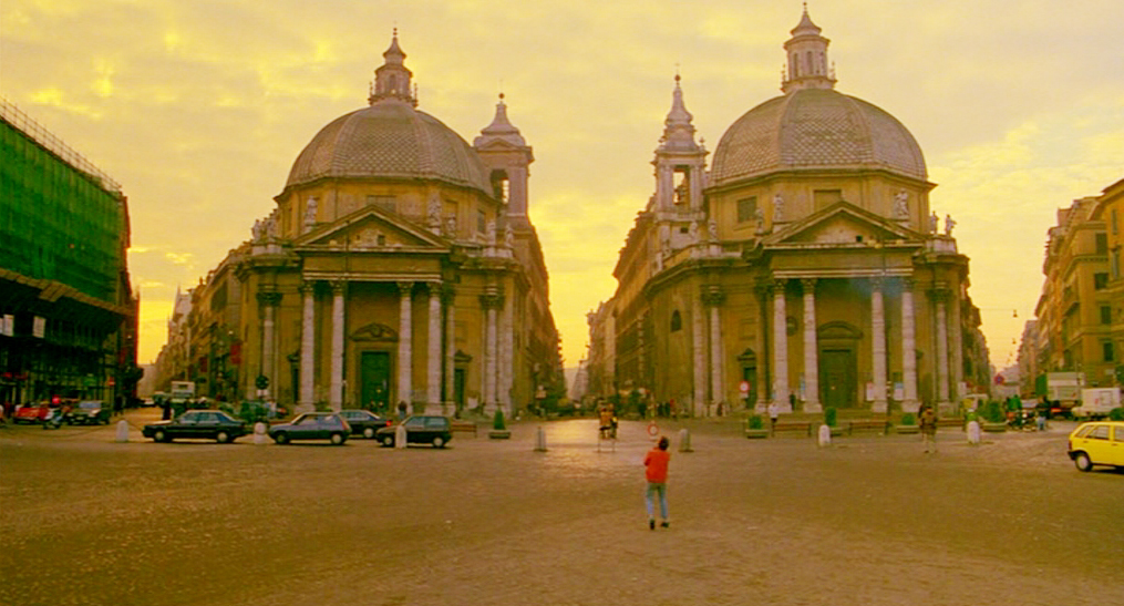 Dans un tout autre film, quand River Phoenix se réveille un matin à Rome, la première chose qu’il aperçoit dans « My own private Idaho »4 est encore les deux mêmes églises jumelles. Et perdu dans sa veste rouge, il est visiblement très impressionné. Si Greenaway, Antonioni et Van Sant commencent l’exploration de la ville à cet endroit, c’est sûrement un bon départ pour notre petite promenade !