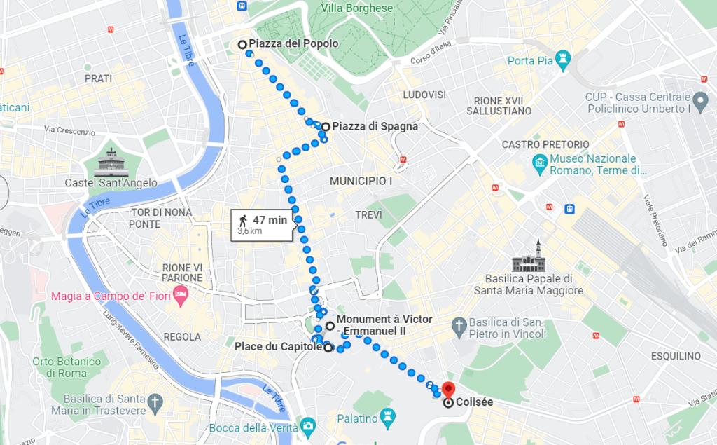 Dirigeons-nous à gauche dans la Via di San Pietro in Carcere, puis à droite dans la Via dei Fiori Imperiali jusqu’au Colisée :