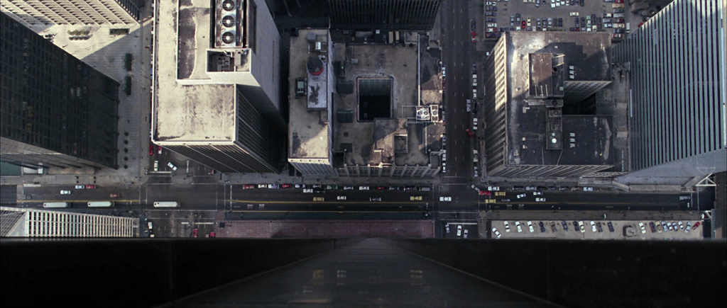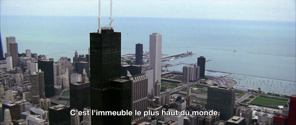 Le visage de Sloane (Mia Sara) penchée sur Chicago, depuis le 103ème étage de la Tour Sears (appelée Tour Willis depuis 2009)…