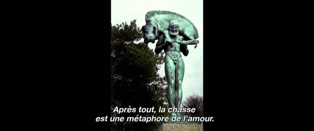 La descente aux enfers en guise de conclusion est ridiculement illustrée entre prises de vues amateur de sortie de canyoning et images féeriques, qui culminent dans une impressionnante reconstruction de peintures vivantes – idée empruntée aux films « La ricotta » de Pasolini (1963) et/ou « Passion » de Jean-Luc Godard (1982).