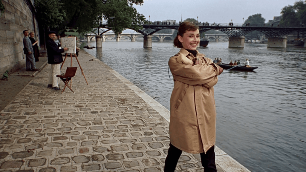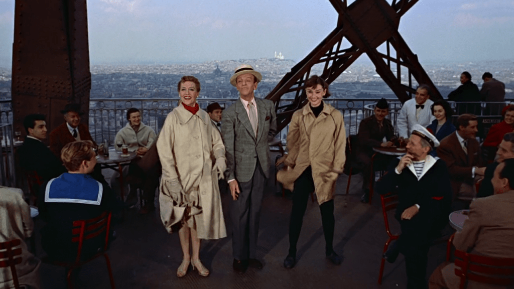 Le film fait voyager Audrey Hepburn (le très jeune mannequin Jo), Fred Astaire (le plus très jeune photographe Dick, qui la découvre et qui en tombe amoureux), accompagné de Kay Thompson (l’éditrice Maggie, qui commande les photos et fait accessoirement office de chaperon) pour plusieurs jours de shooting à Paris.