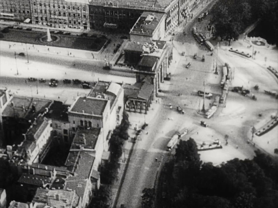 Berlin est d’abord montré comme une ville dynamique, voire angoissante avec des voitures qui foncent à toute allure et dans tous les sens à travers la capitale. Le trafic est dense, encadré par des immeubles imposants et les gens sont en mouvement permanent.
