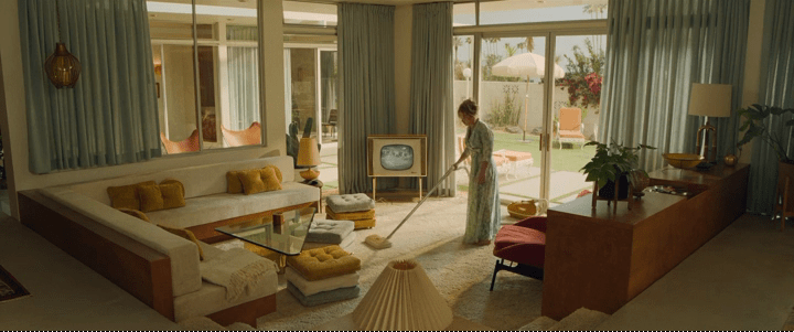Cette routine immuable se déroule dans un décor tiré à quatre épingles et trop beau pour être vrai. C’est justement tout l’intérêt du film qui rejoue la perfection supposée d’une modernité pensée à outrance qui doit procurer harmonie et perfection – à l’instar du lotissement de « Mon Oncle » de Jacques Tati, dans une version américanisée.