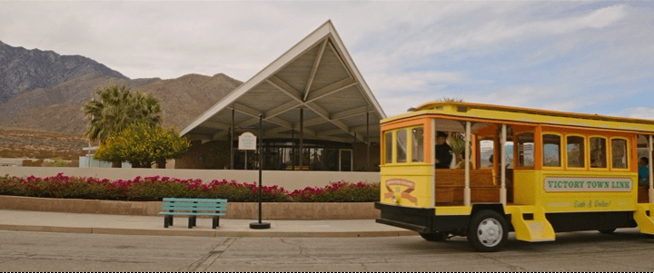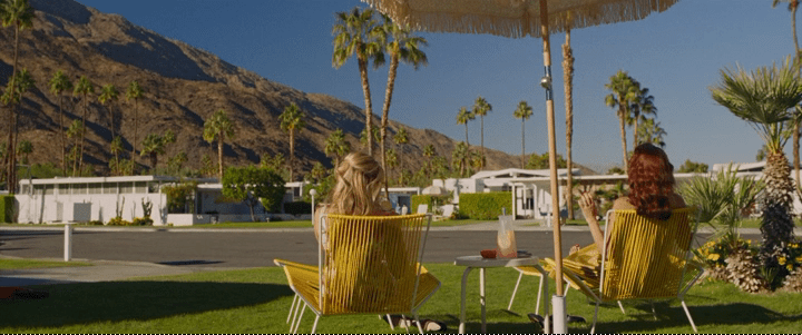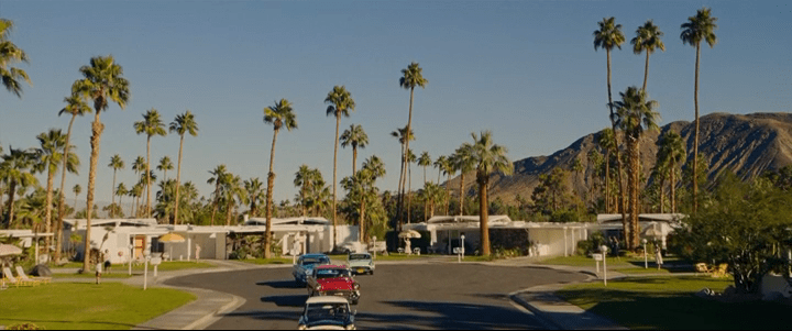 On aperçoit dans le film un autre repère important de l’architecture moderne, emblématique de Palm Springs : la Tramway Gas Station de l’architecte suisse Albert Frey (conçu avec Robson Chambers en 1965), dominée par un immense toit triangulaire hyperbolique – autre cliché des années soixante – où l’envol de la toiture évoque la liberté procurée par la voiture. La station-service (qui s’appelle Tramway, puisque construite sur « Tramway Road ») est restée en service jusqu’au début des années 1990, puis a été transformée un temps en galerie d’art, pour devenir ensuite l’office de tourisme de Palm Springs.