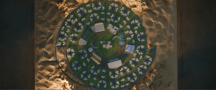 Cette communauté se distingue par un urbanisme ludique de maisons individuelles parfaitement agencées, dans une petite oasis où les hommes partent tous en voiture au petit matin travailler pour le même patron, le charismatique Frank (Chris Pyne), fondateur du mystérieux « Victory project ».