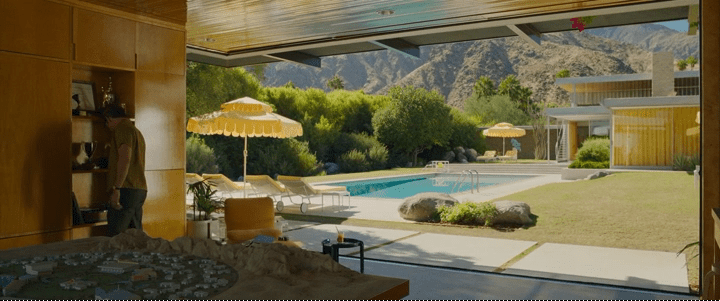 Si le film ne montre qu’une des quatre cours, et jamais la totalité ni l’intérieur de la maison (ce qui est regrettable), la réalisatrice Olivia Wilde affirme que tourner dans la Kaufmann Desert House a été « une déclaration d’amour, non seulement au cinéma, mais à l’architecture, au design et à cette époque »1.