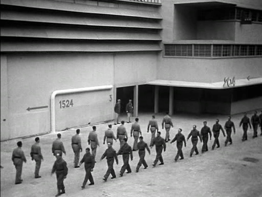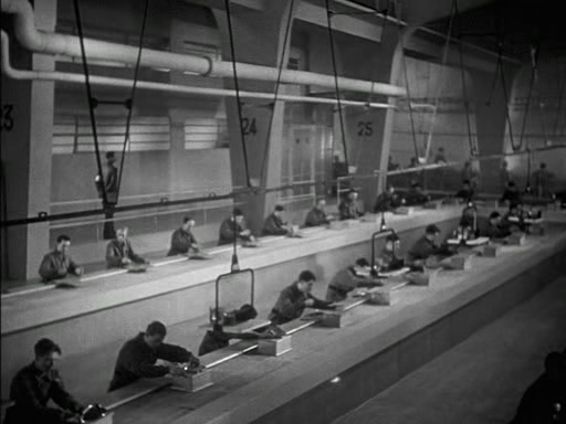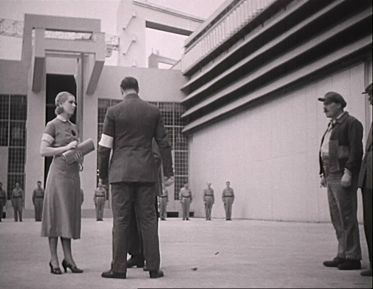 Le rapprochement visuel et fonctionnel entre la prison (au début du film) et l’usine (par la suite) est frappant : les gardiens de l’institution pénitentiaire deviennent les contremaîtres du lieu de production. Les uniformes déterminent la hiérarchie dans les deux cas. L’ordre et l’obéissance sont les maîtres-mots. L’efficacité prime sur le bien-être au travail.