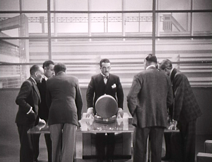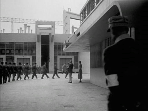 C’est donc peut-être l’unique film où Meerson a recours à une « super-architecture », mais toujours au service de l’histoire et pour exalter l’ambiance recherchée. A l’instar d’un Jacques Tati, qui, dans « Mon Oncle » et « Playtime », sublime l’architecture moderne pour ensuite démontrer son inhumanité, Meerson et Clair poursuivent ici le même but : dénoncer la splendeur de la modernité en tant que vecteur d’un développement néfaste pour l’homme : l’usine a beau être efficace, esthétique, hygiénique et rationnelle, elle est constamment associée à une prison ou une caserne, les travailleurs s’y déplaçant comme des soldats ou des robots.