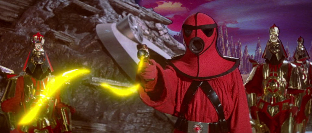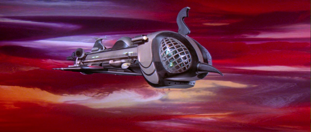 De même l’intérieur de la ville qui vole des hommes-oiseaux est uniformément aseptisé gris-argent. Les décors démentiels et les costumes débridés sauvent pour une grande partie le film, dont les effets spéciaux restent assez pauvres (comparés à ceux de la « Guerres des étoiles » sortie deux ans plus tôt).