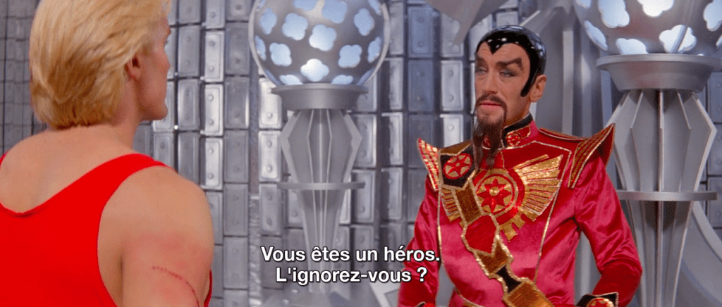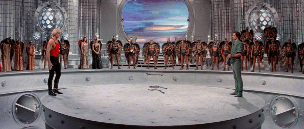 En dehors du T-Shirt trop suggestif, Hodges n’a visiblement pas beaucoup freiné Danilo Donati : la surenchère des couleurs éclate jusque dans le ciel, et les vaisseaux-spatiaux se transforment en dards phalliques – qui rappellent les vaisseaux-pénis de « Flesh Gordon », parodie érotique non-officielle, tournée en 1974. La musique tapageuse de Queen, à la fois rythmique et symphonique, renforce l’impression de surenchère permanente.