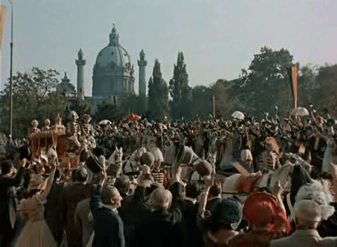 Le film a au moins le mérite de nous montrer, enfin, quelques vues véritablement filmées à Vienne dans sa dernière partie. Comme cette brève mais magique vision des parterres de fleurs rouges devant le château de Schönbrunn, …