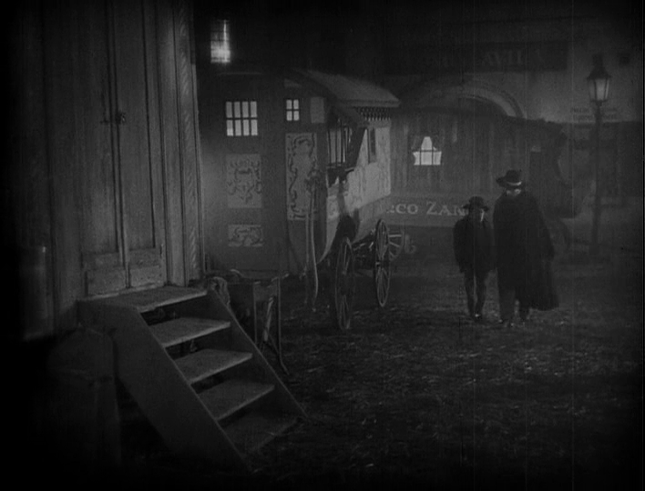 Browning situe ses films souvent dans des environnements louches et inquiétants pour souligner l’étrangeté de ses histoires. Si ce ne sont pas les bas-fonds de la ville, il s’agit comme ici, du monde du cirque avec des caravanes aux formes expressionnistes.