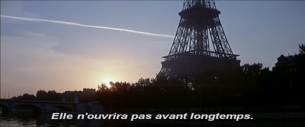 On ne peut s’empêcher de penser que Billy Wilder avait un certain mépris pour cette structure métallique, qu’il s’oblige à montrer pour introduire Paris, avant de la faire disparaître très vite à nos yeux… ou encore de l’associer au suicide. Une tour comme une image de la mort ou de la petite mort ?