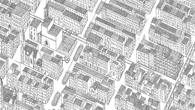 … une ville fête foraine, où les rues en pentes deviennent des montagnes russes et où les maisons – selon le point où l’on se situe – semblent pencher.