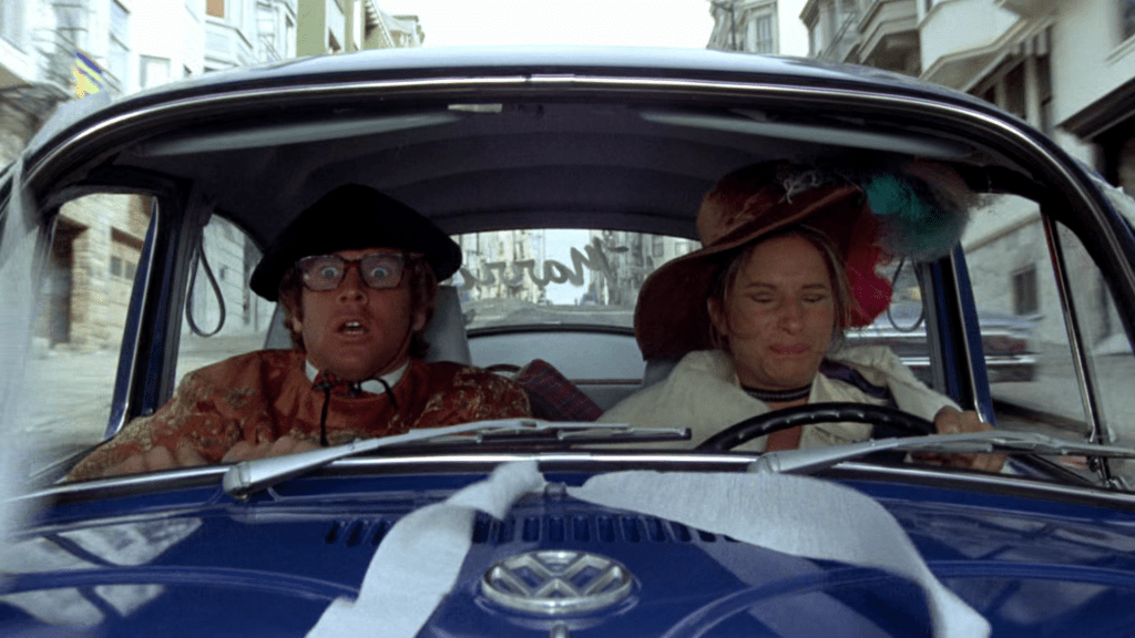 … avec à l’intérieur, un Ryan O’Neal ahuri et une Barbra Streisand faisant abstraction du danger.