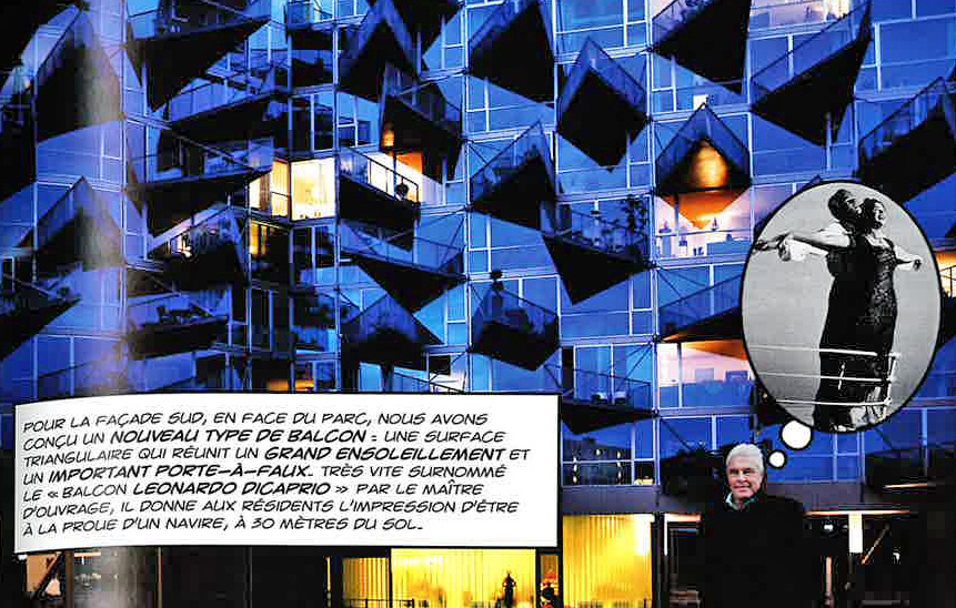 Une scène de ce dernier film, devenue célèbre, a même inspiré l’agence d’architectes BIG dans son projet « VM houses » à Copenhague, avec des balcons « Léonardo DiCaprio » 2 ! Légitimation pseudo-poétique pour un principe de balcon expressif, mais de facto peu pratique et difficilement utilisable en raison de sa forme triangulaire.