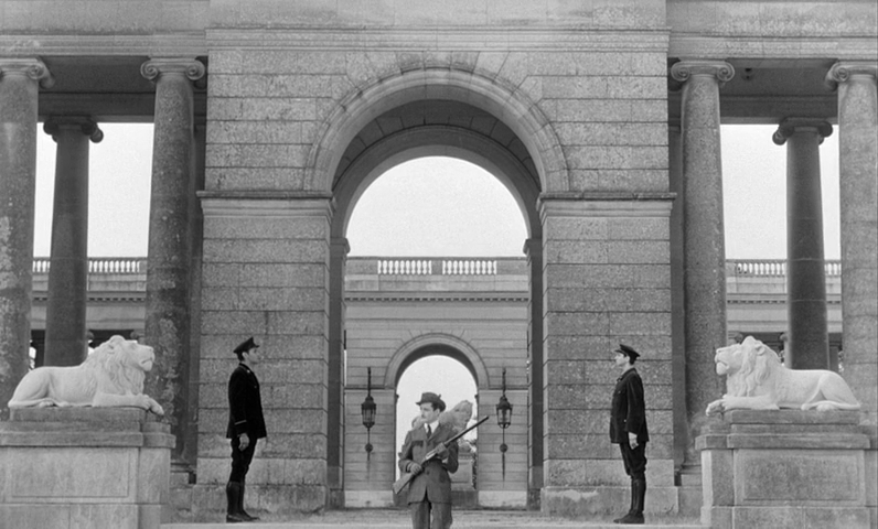 Etaix (le cinéaste) souligne l’ennui de son personnage par l’architecture ordonnée et répétitive de la demeure et ses compositions parfaitement symétriques.
